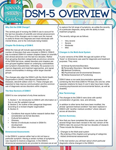 What is your hobby? Have you heard which question when you got learners? We believe that that concern was given by teacher to their students. Many kinds of hobby, Everybody has different hobby. And you know that little person such as reading or as reading become their hobby. You have to know that reading is very important along with book as to be the point. Book is important thing to incorporate you knowledge, except your current teacher or lecturer. You find good news or update regarding something by book. Many kinds of books that can you take to be your object. One of them is actually DSM-5 Overview (Speedy Study Guides).
